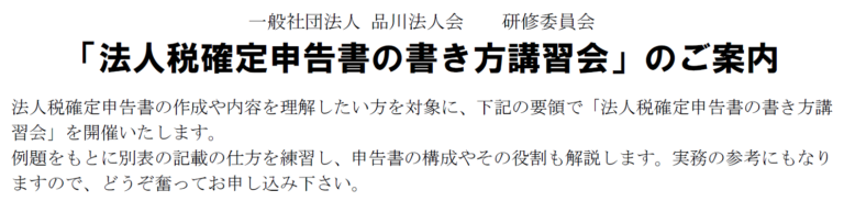 お問い合わせ先品川法人会事務局(℡:3474-7449)